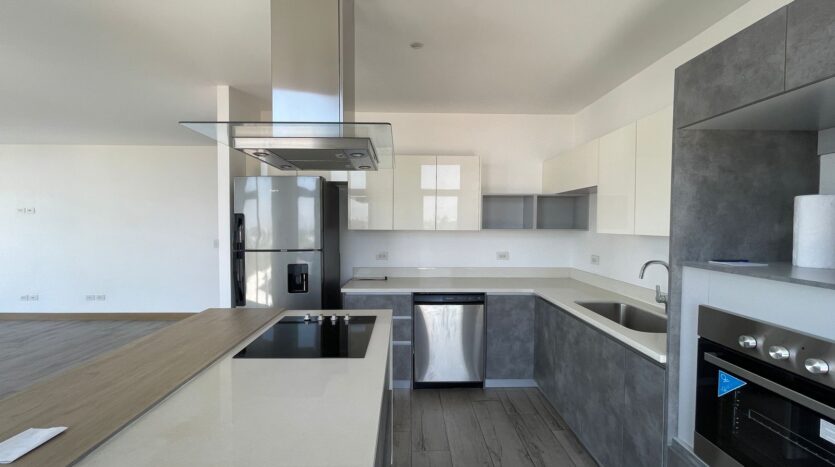 Cocina con isla equipada con línea blanca